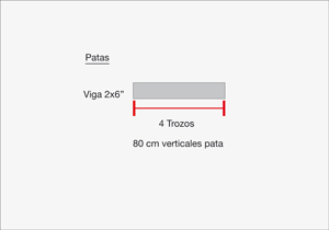 Para las patas cortar las vigas estructurales de 2x6” en 4 trozos de 80 cm.