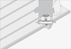 Rebajar los bordes de la cubierta y las bancas con la fresadora. Se rebaja con una fresa biseladora para eliminar los filos y astillas. Lijar todas las cubiertas y cantos.